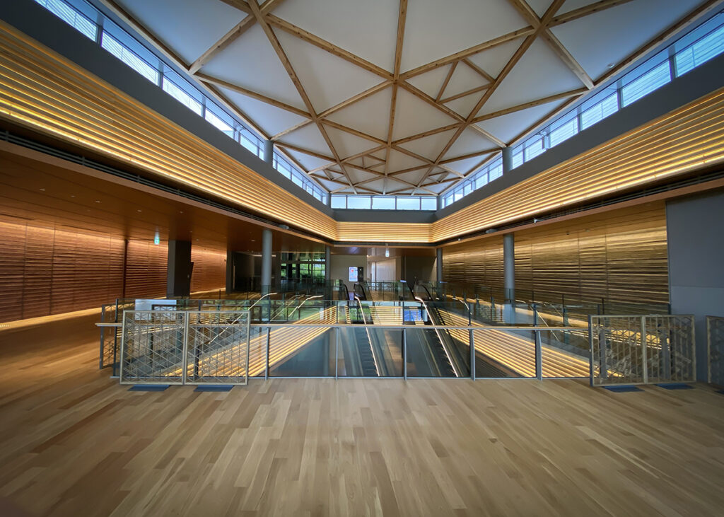 Akita cedar, one of Akita Prefecture’s traditional products, is used throughout the building.